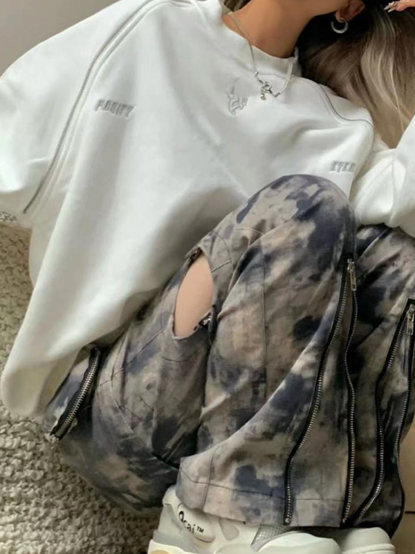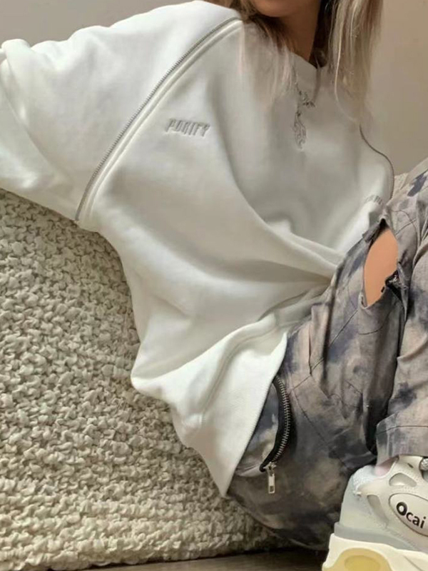 Patchwork-Sweatshirt mit Stickerei und Reißverschluss und Reißverschluss Menge