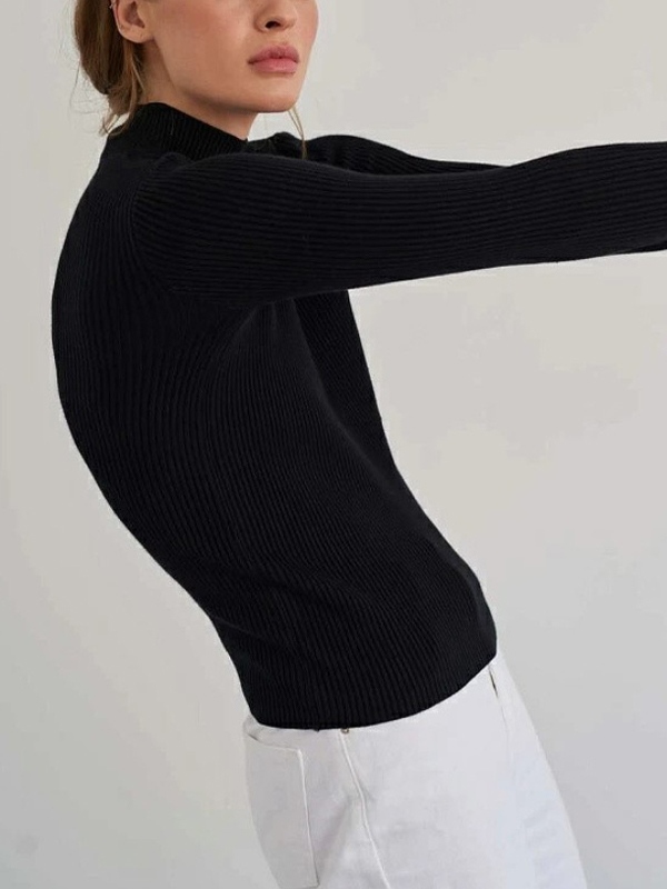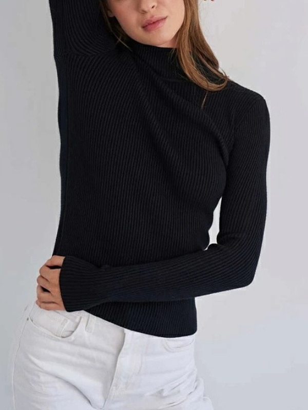Einfarbiger, schmaler Strickpullover mit Stehkragen