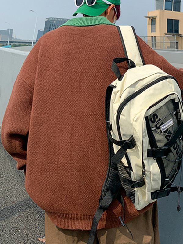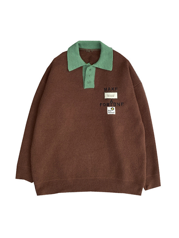 Herren-Strickpullover mit Buchstaben-Stickerei und Beschriftung in Kontrastfarbe