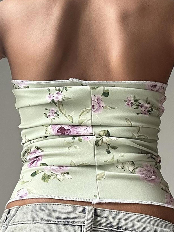 Bandeau-Top mit kleinem, frischem Blumendruck