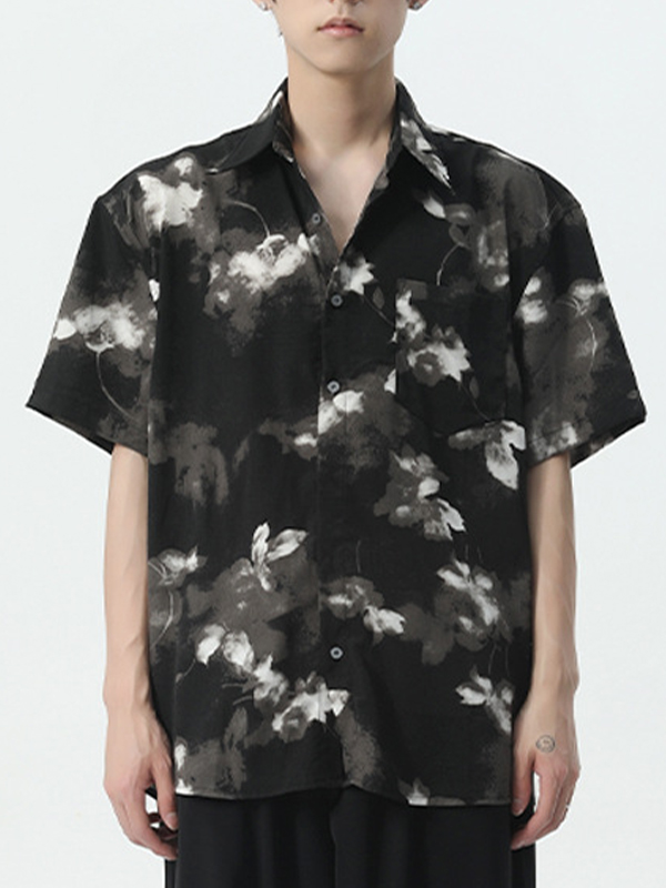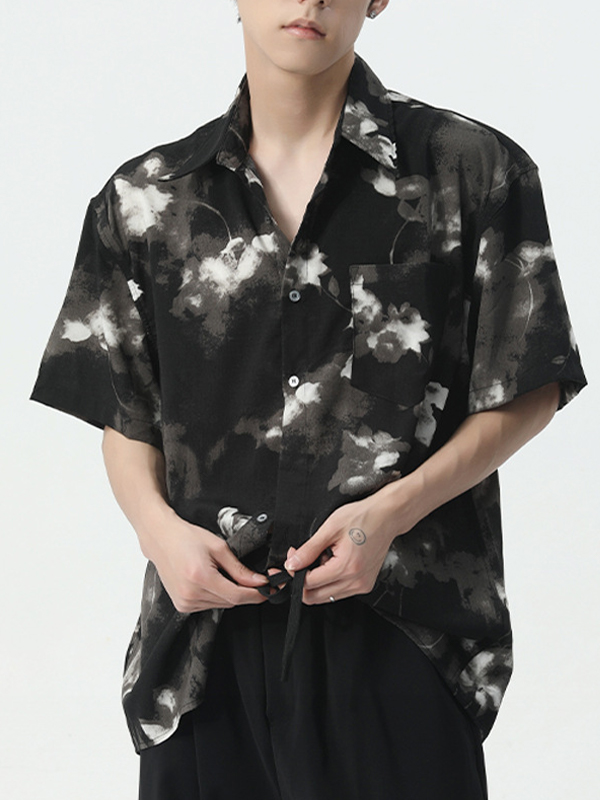 Kurzarmshirt mit Batikmuster und Blumenmuster im Retro-Look