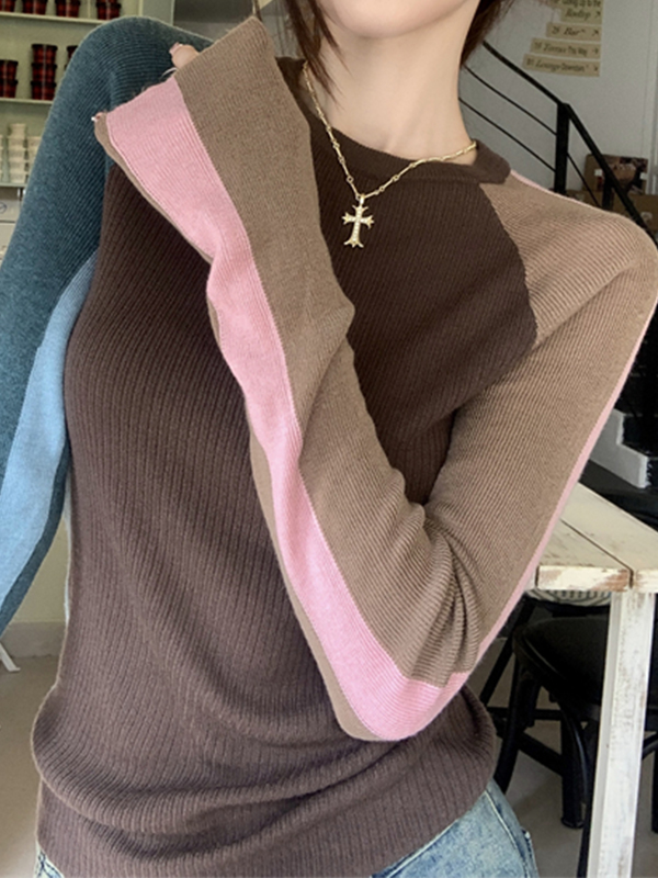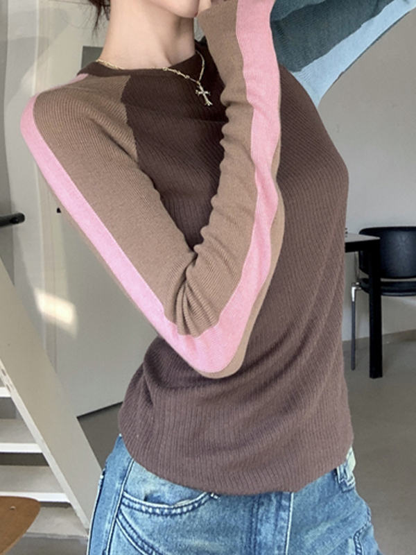 Langarm-Strickwaren im Colour-Blocking-Stil