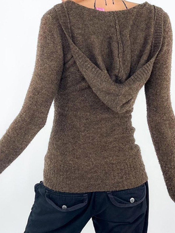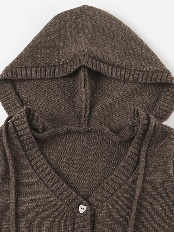 Strickwaren mit Kapuze und V-Ausschnitt und langen Ärmeln