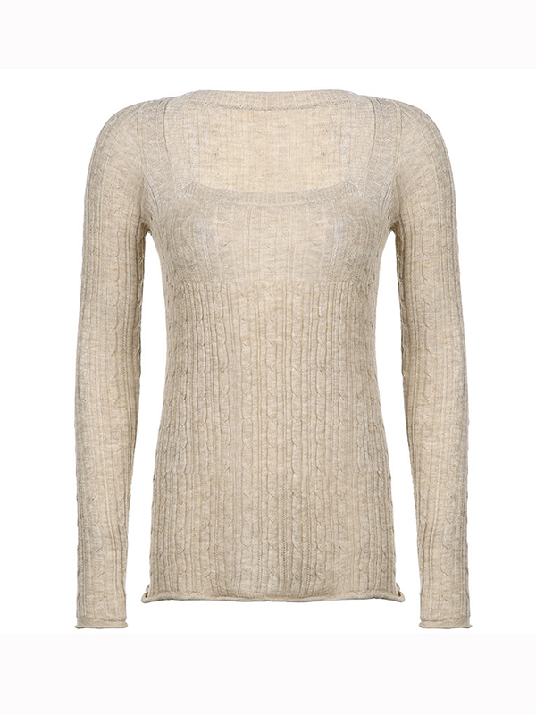 Strickwaren mit tiefem Ausschnitt und langen Ärmeln