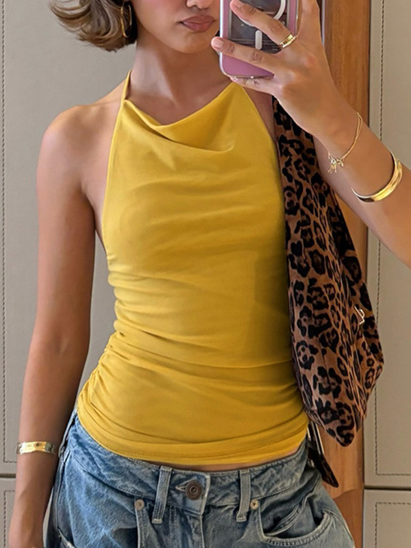 Sexy rückenfreies Neckholder-Top in Volltonfarbe