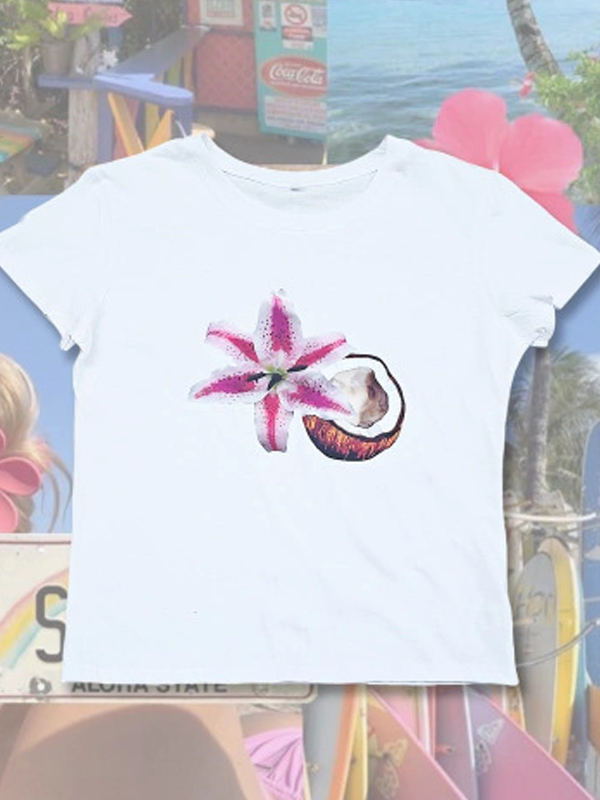 Kurzärmliges T-Shirt mit Blumendruck Menge