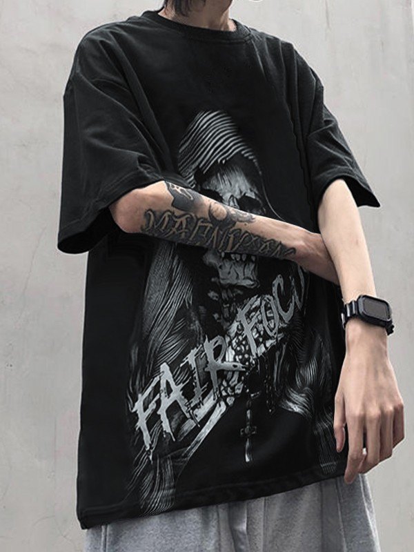Kurzärmliges Vintage-T-Shirt mit Totenkopf-Grafik für Herren Menge