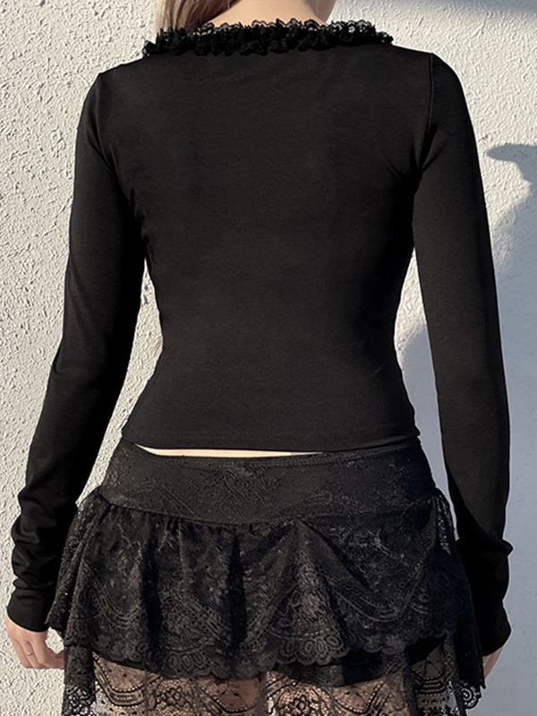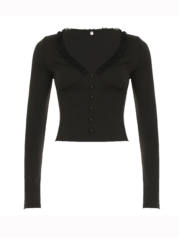 Langärmliges T-Shirt mit V-Ausschnitt und Spitze