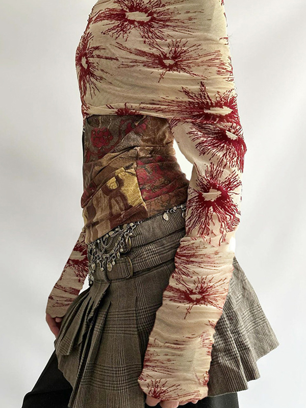 Langarm-T-Shirt mit One-Shoulder-T-Shirt und Netzstoff