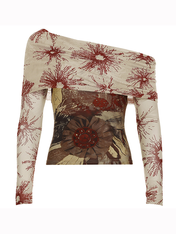 Langarm-T-Shirt mit One-Shoulder-T-Shirt und Netzstoff Menge
