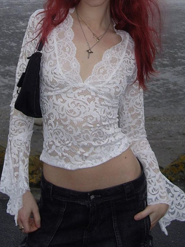 Langarm-T-Shirt mit Spitze Menge