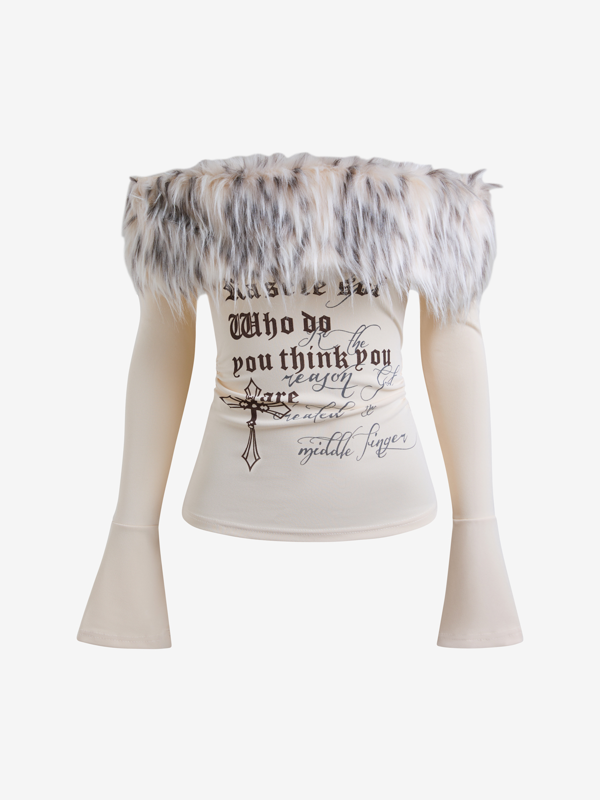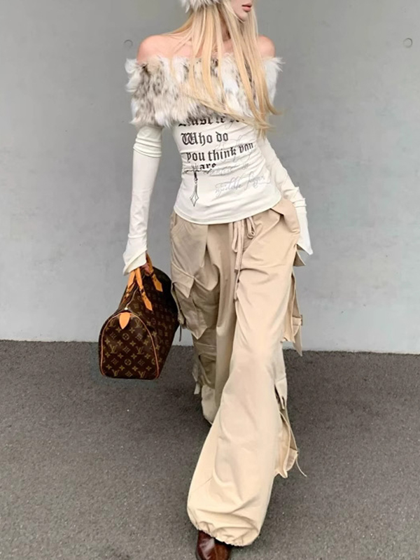 Sexy Hot Girl Pelzkragen Brief Print Langarm Menge