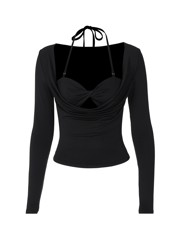 T-Shirt mit langen Ärmeln und Futter am Ausschnitt