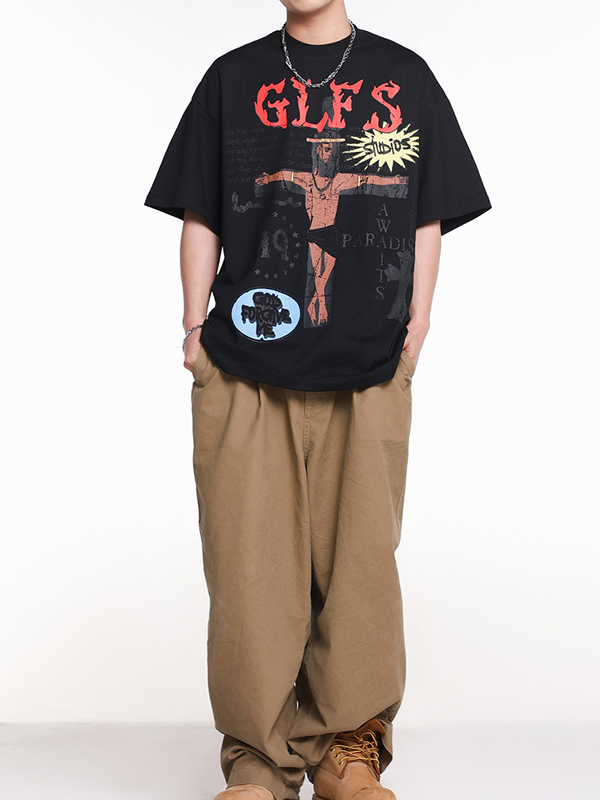 Übergroßes, kurzärmliges T-Shirt mit Kreuz-Print für Herren