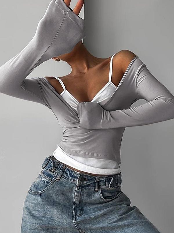 Zweiteiliges Langarm-T-Shirt mit Farbblock Menge