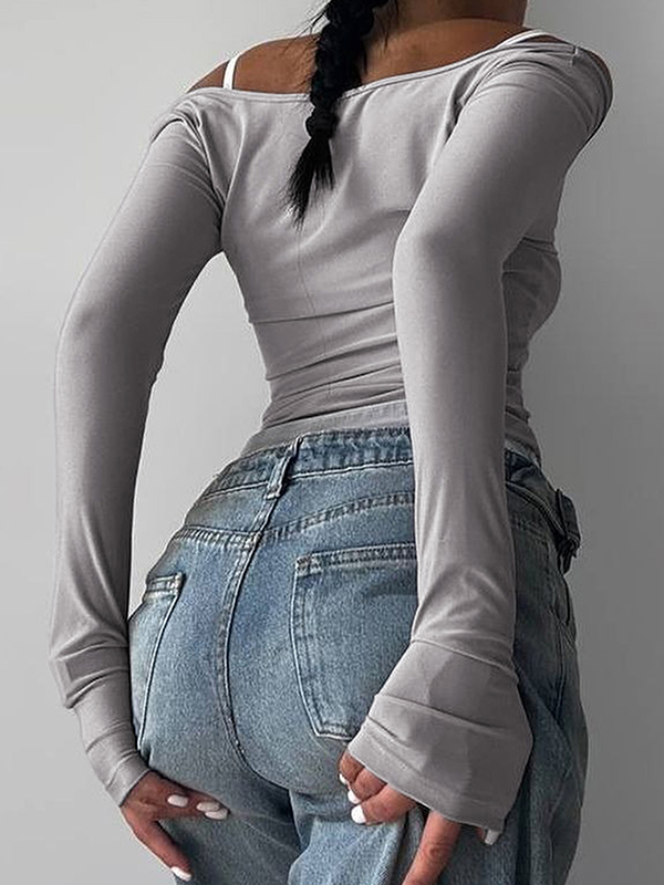 Zweiteiliges Langarm-T-Shirt mit Farbblock