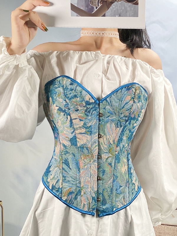 Korsett-Oberteil mit Ölgemälde-Print und Schnürung hinten